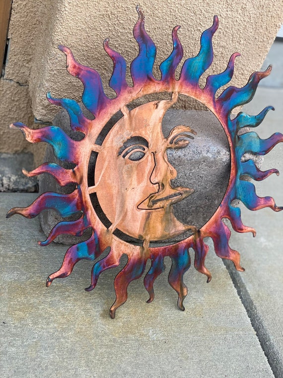 Copper And Blue Patina Sun Patina Sun Metal Sun Metal Wall Art Wall Art Sun And Moon Art Patina Art Metal Patina Wall Art Sunshine Etsy Uk